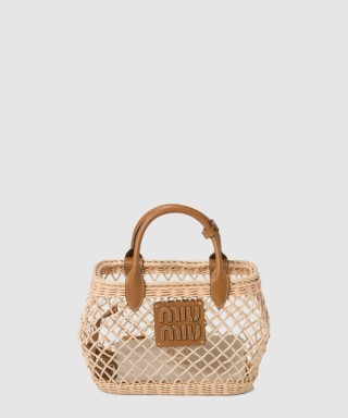 [MIUMIU-미우미우]가죽 트림 우븐 패브릭 핸드백 5BA286