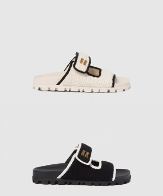 [MIUMIU-미우미우]크로셰 니트 슬라이드 샌들