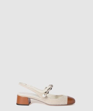[MIUMIU-미우미우]캔버스와 가죽 백 스트랩 펌프스 5I045E