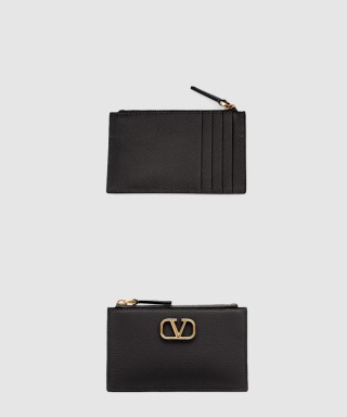[VALENTINO-발렌티노]브이로고 시그니처 스탐파 알체 카프스킨 지퍼 카드 케이스