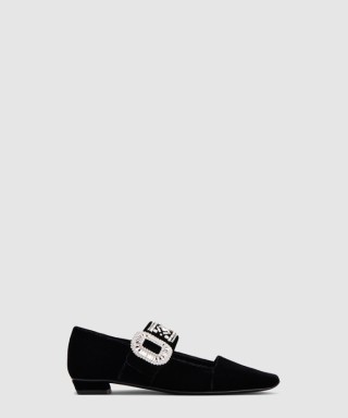 [ROGER VIVIER-로저비비에]크리스탈 벨벳 메리 제인 발레 플랫 0074