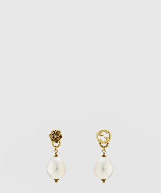 [GUCCI-구찌]인터로킹 G 플라워 펄 귀걸이 661121