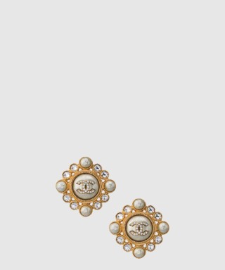 [CHANEL-샤넬]진주 크리스털 원형 귀걸이 AB3193